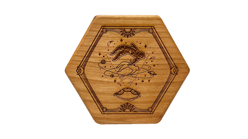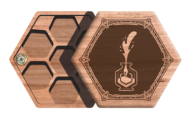 Part of a design series that features custom illustration based on customers’ Dungeon and Dragon’s character sheets as well as a Special Edition seal on the bottom. The Ethereal Planes Hex Chest is inspired by Liv, a LVL 10 Divination Wizard who has the power to Astral Project and predict the future.